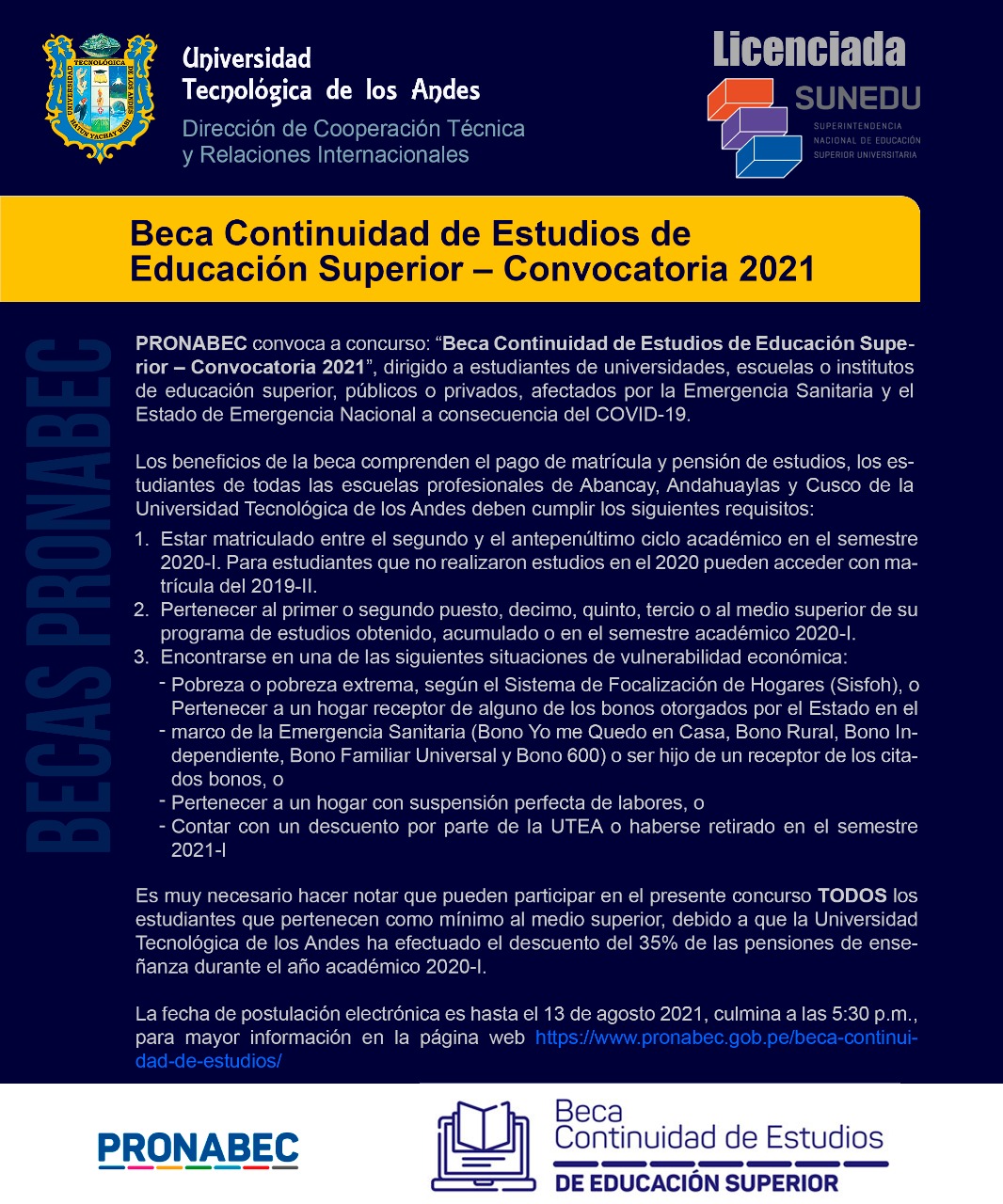 Estudiantes de la Escuela Profesional de Ingeniería Ambiental y Recursos Naturales de la Universidad Tecnológica de los Andes (UTEA), organizan el evento académico virtual denominado “Primer Coloquio Estudiantil en Investigación y Tecnología Ambiental” que se cumplirán los días 13 y 14 de agosto.